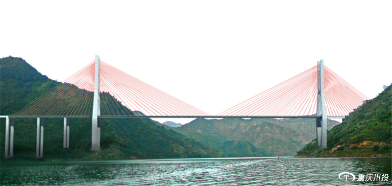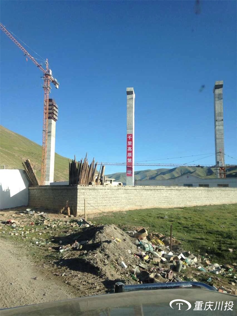 藍(lán)天白云下的紅水河與塔機(jī)